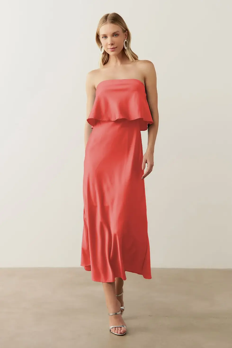 Vestido Long Midi Slip Dress com Alca Removivel - Cartagena Coral Tamanho:M
